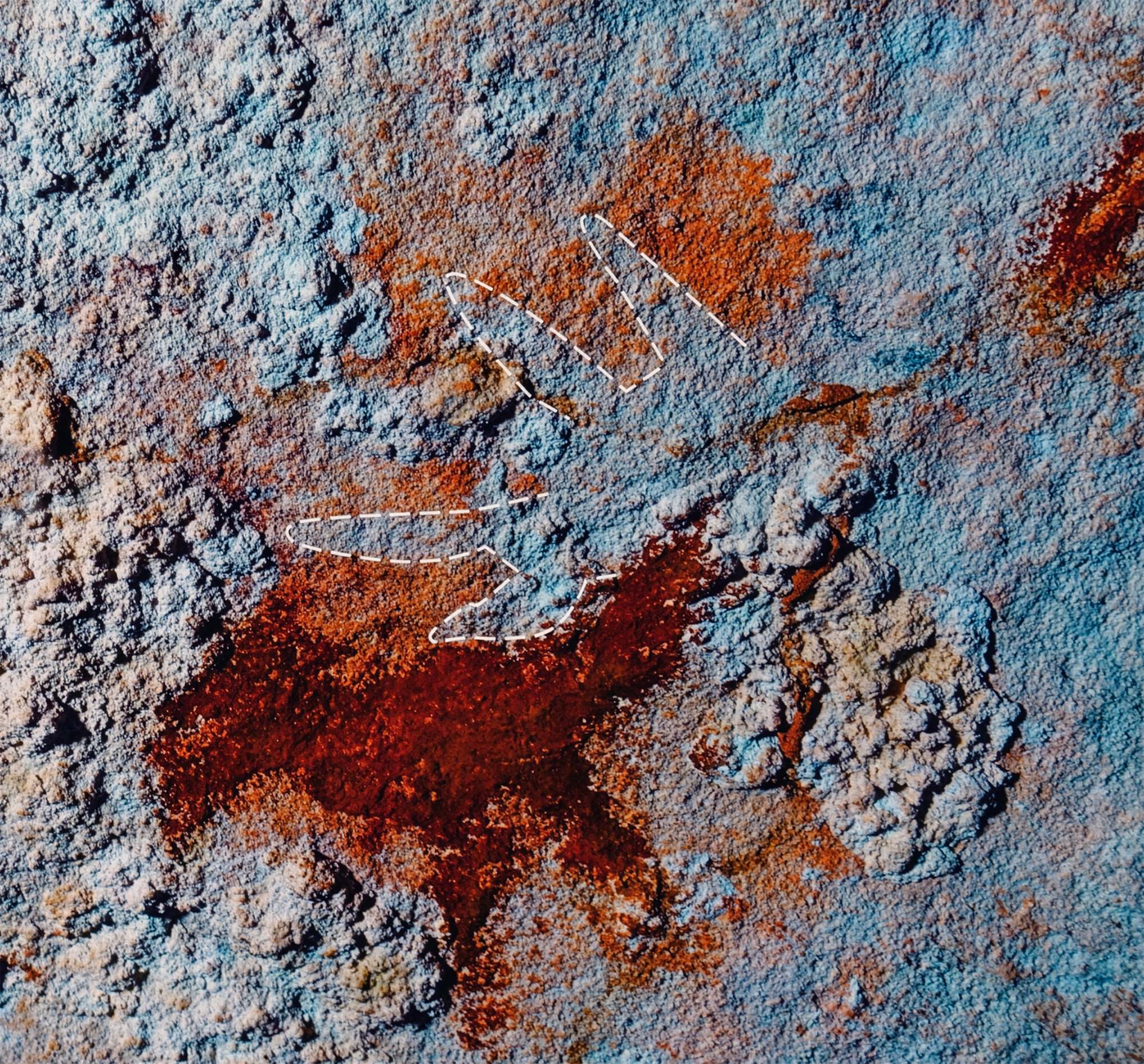 The latest discovery is from a limestone cave called Liang Metanduno on Muna, a small island off south eastern Sulawesi. It has been spray-painted: an ancient graffiti artist pressed their hand flat against the cave wall, then blew or spat a mouthful of pigment around it so that, when they pulled the hand away, a negative outline was left behind on the rock.