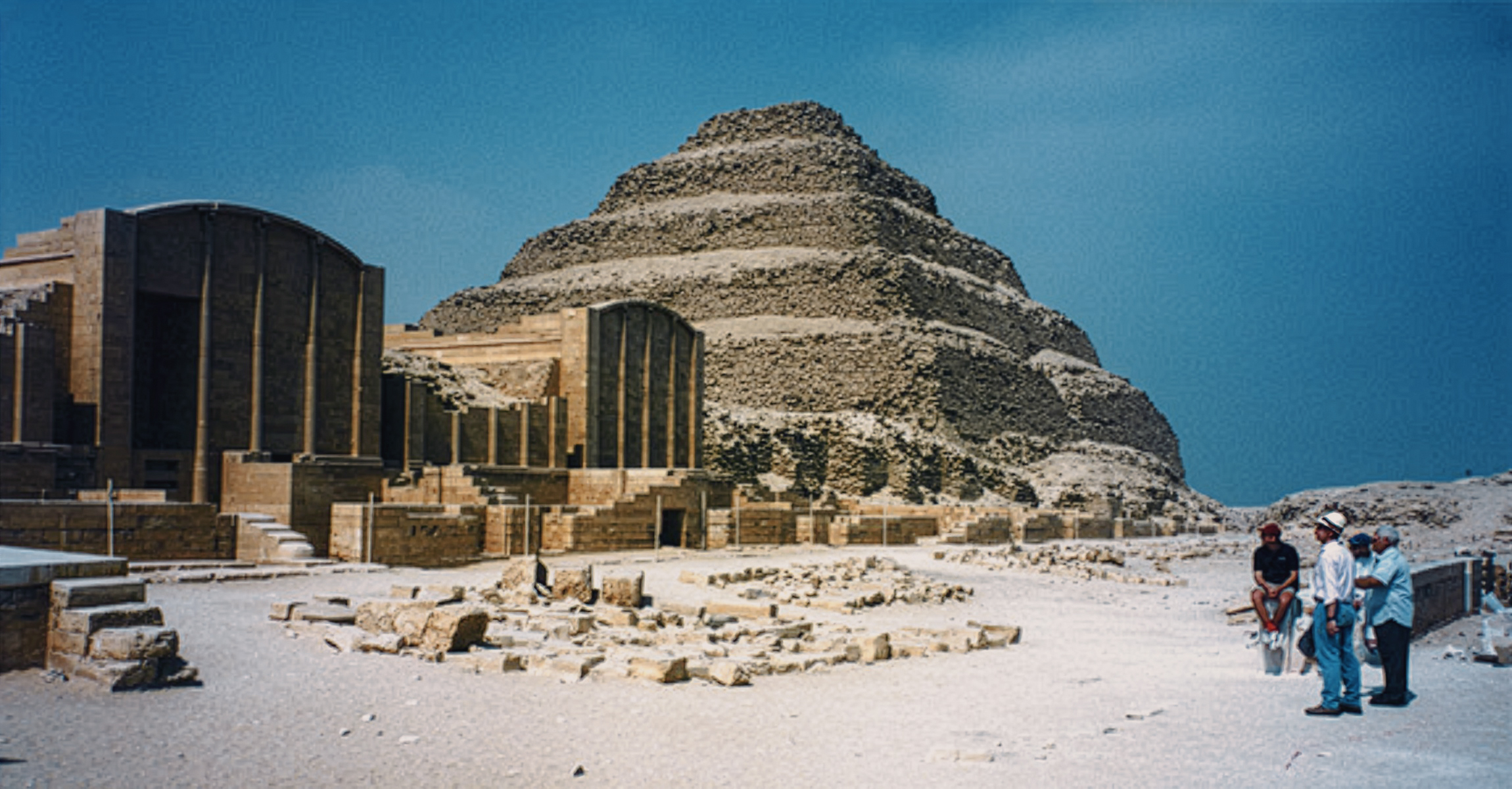 Under the guidance of Dr. Nabil Swelim, Robert A. Hefner III, the late John Robinson, and myself Damon de Laszlo with other members of the Bradshaw Foundation , visited Cairo, Egypt to view the recently discovered Tomb of Vizier Fefi, excavated at the Step pyramid of Saqqara by the archaeological team of Professor Karol Mysliwiec from the Polish Academy of Sciences for Mediterranean Archaeology.