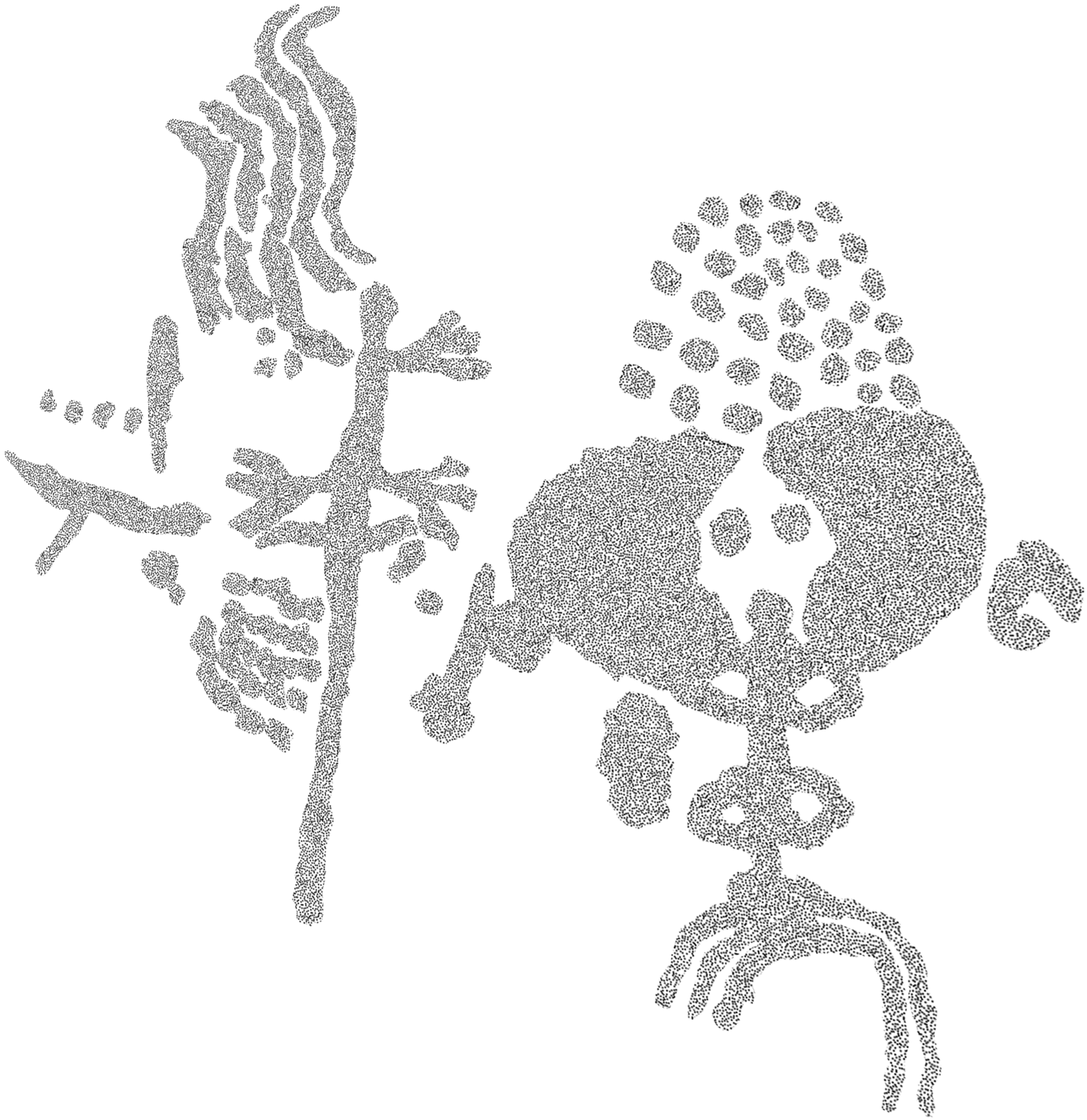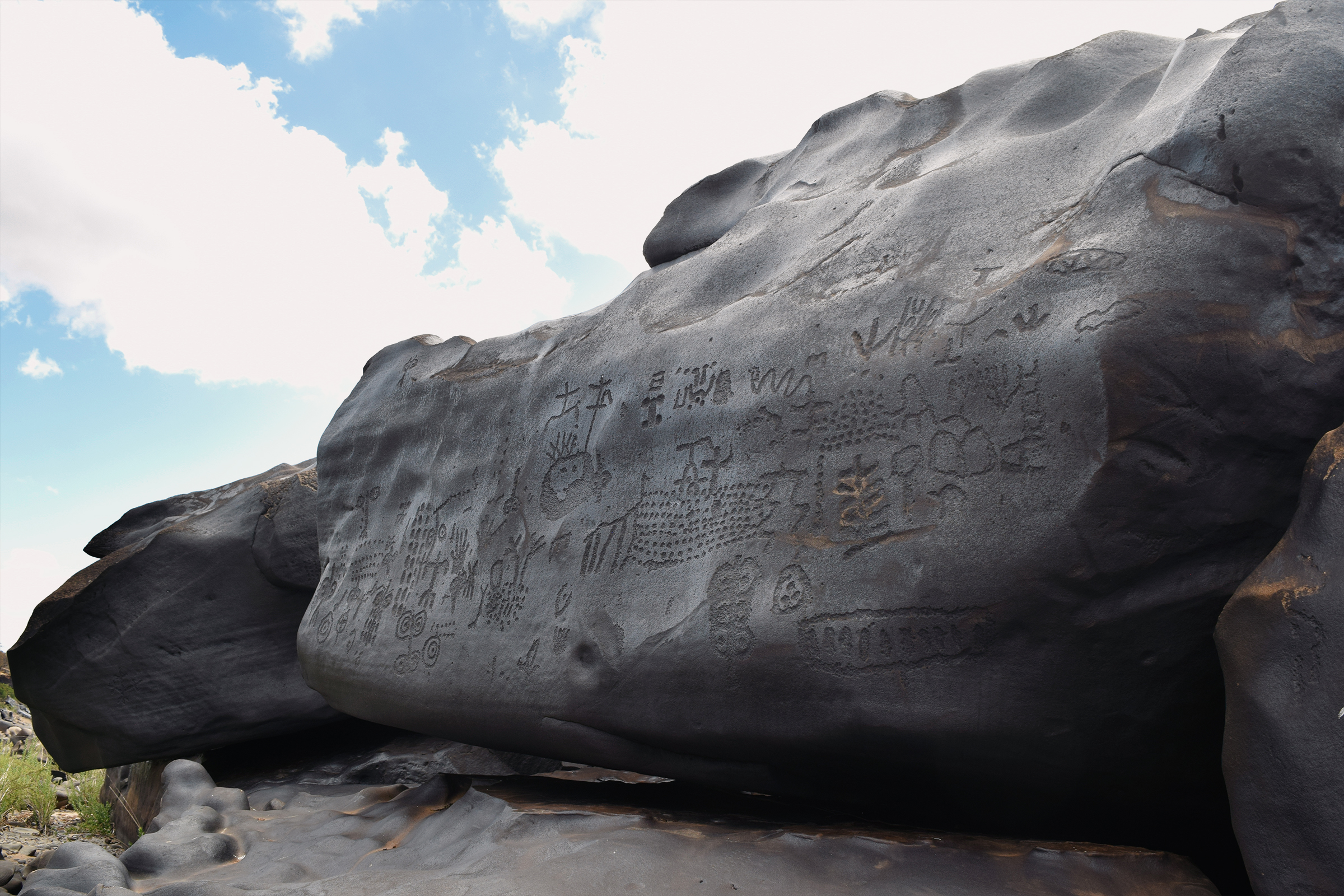 The canyon is so densely covered with motifs that it is often difficult to discern where one panel ends and another begins, each expressing the tradition’s distinct formal and symbolic character. Yet, within this vast continuum, specific groupings of motifs or distinctive rock formations stand out. Four panels, in particular, perfectly embody this site’s spirit and its conceptual sophistication: