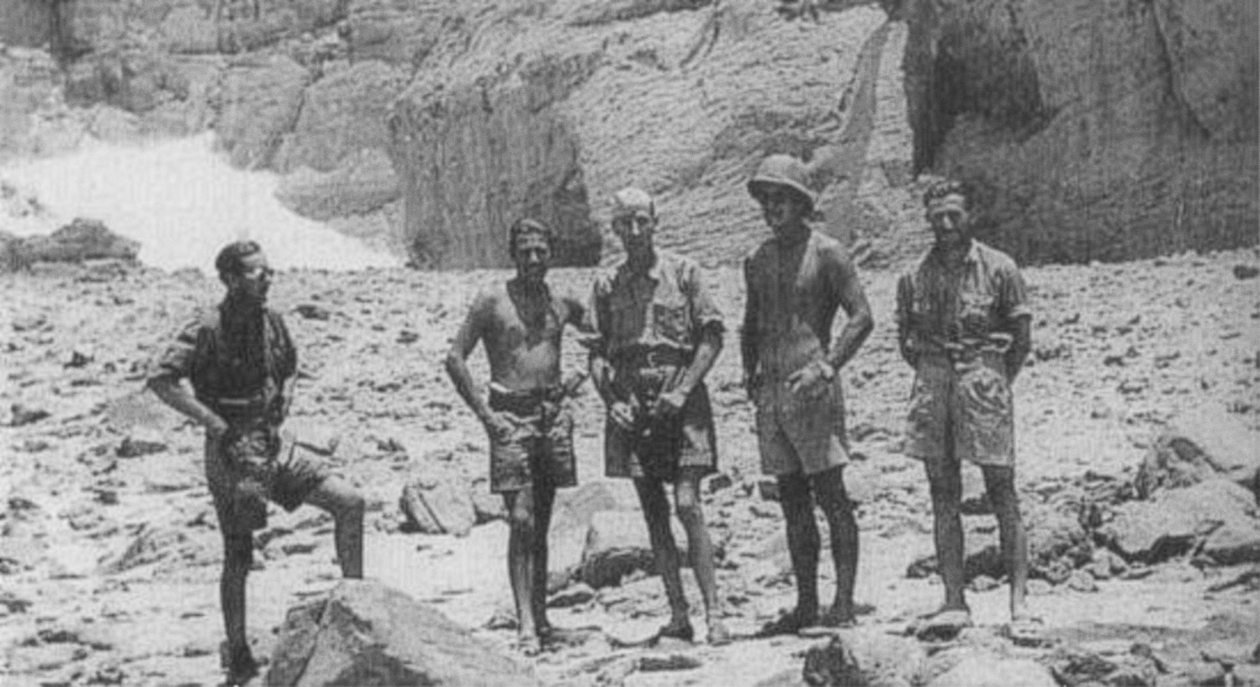 In 1932 Almásy and Clayton, together with a similarly-named young Englishman, Sir Robert Clayton East Clayton, organised a major expedition to survey the unknown western side of the Gilf Kebir, and for the first time the surveying equipment included an aeroplane - a Gypsy Moth belonging to Robert Clayton. The Gypsy Moth revealed three hidden valleys with vegetation in the northern Gilf Kebir. All previous attempts to reach them over land had failed, but in 1933 Almásy and Clayton, on separate expeditions, succeeded in entering them - Clayton the two to the east, Wadi Hamra and Wadi Abd el Melik, and Almásy to the west, Wadi Talh. On the same 1933 expedition Almásy went on to reach Regenfeld and the rock paintings of Ain Doua at Uweinat. Later that year, on a separate expedition, he discovered the painted caves at Wadi Sora - he had found the 'swimmers'.