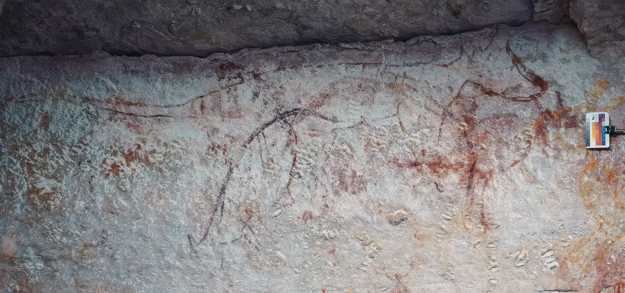 Two of the paintings were made using white pipe clay (kaolin) with red ochre.
