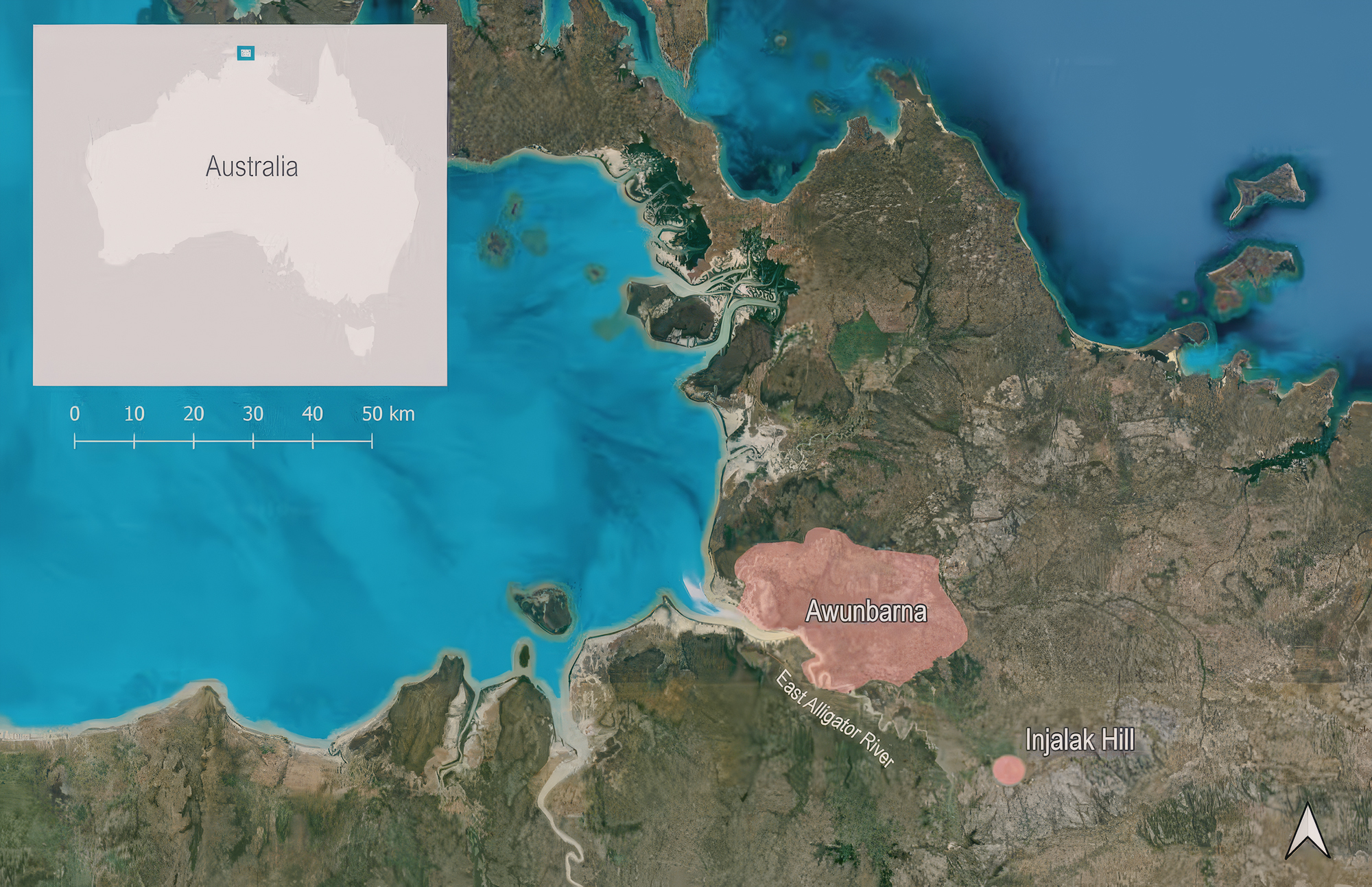 Our research focuses on rock paintings from Awunbarna (Mount Borradaile) and Injalak Hill (near Gunbalanya), east of the East Alligator River that separates Arnhem Land from Kakadu National Park.