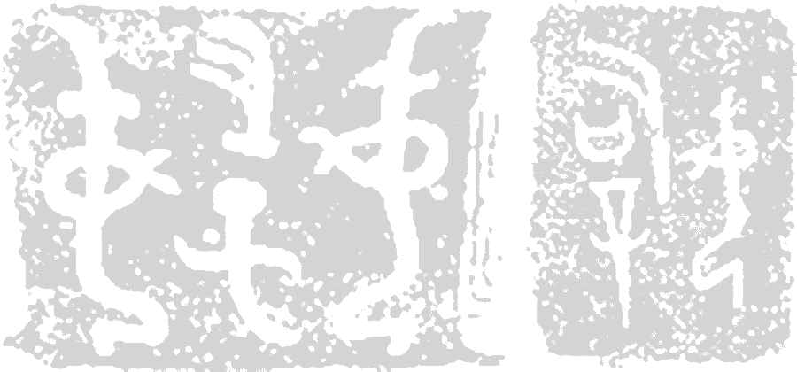 In Yinshan, Inner Mongolia, we find an inscription beside some engravings that says, "The Parents of Writing". In Helanshan, we find another inscription beside some engravings, "The Writing Deity's Writing (the writing of a writing deity).