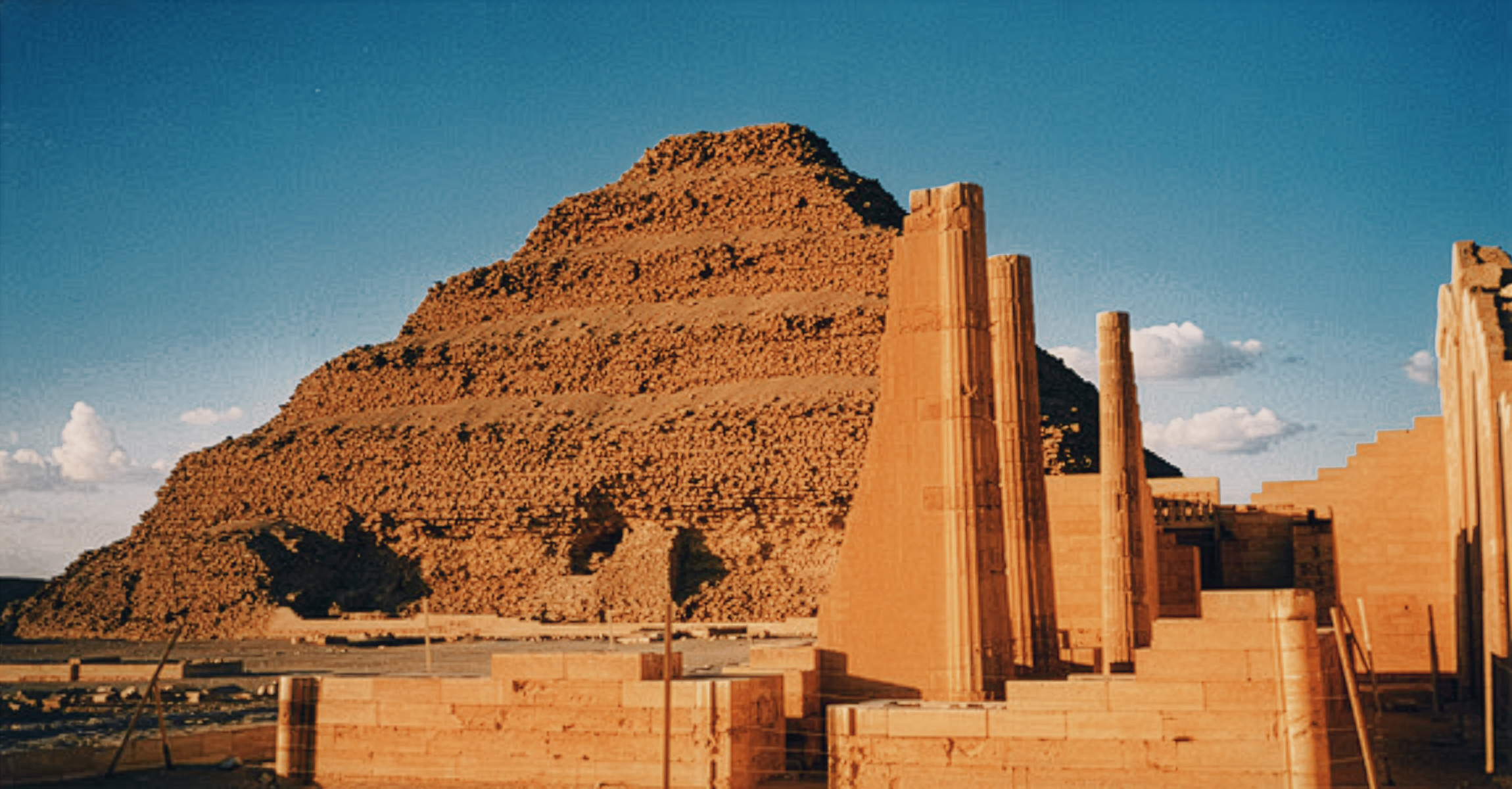 The step pyramid of Saqqara, built in 2,800 BC by Vizier Imhotep, is the first monumental structure to be constructed entirely of carved stone. It comprises the vast funeral complex of Djoser, the second king of the 3rd Dynasty, that served ancient Memphis. Vizier Imhotep himself has been called Doctor, Sage, Architect, Astronomer and High Priest.