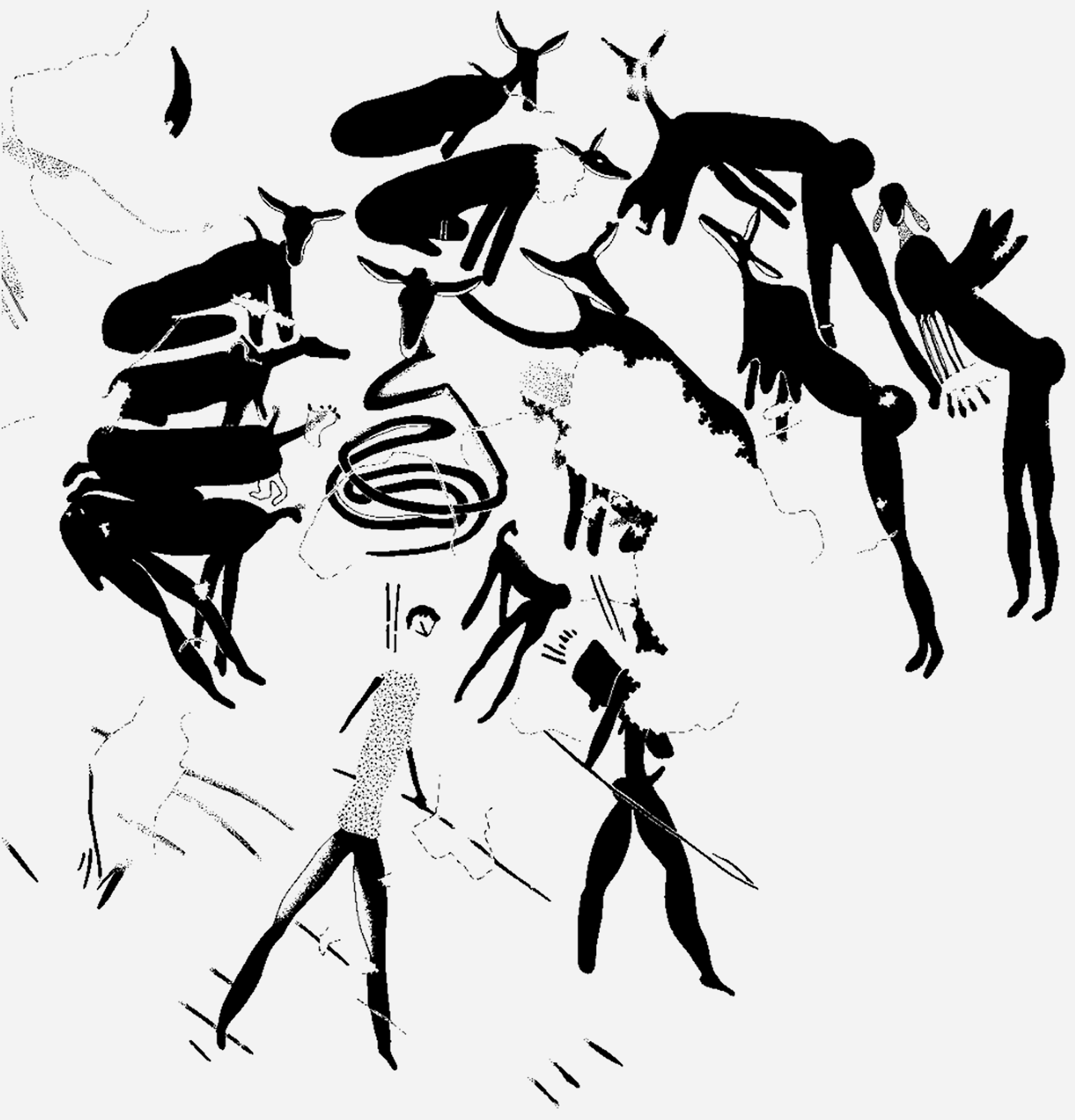 The logic that the ‘frame’ upon which something is placed is key to unlocking its meanings continues in our analysis. However, we find that in the implication of the ‘veil’ between the mundane world and the spiritual, this scope of potential meanings is limited to ritual aspects. Unpicking what the broader context represents—what the universe is beyond the ‘canvas’ immediately observable behind the image—is a much more difficult proposition, as not all of the relevant symbology and mechanisms are visible in frame. However, once broadened to include the social topography in which these images reside, and the continuous plane of spiritual and mundane but ultimately social cosmos, the focus of an image begins to align with the concerns that anyone would have when navigating the world. It can include perception and understanding, normative alignment, and the brokerage of relations (whether hunting, in trance or otherwise).