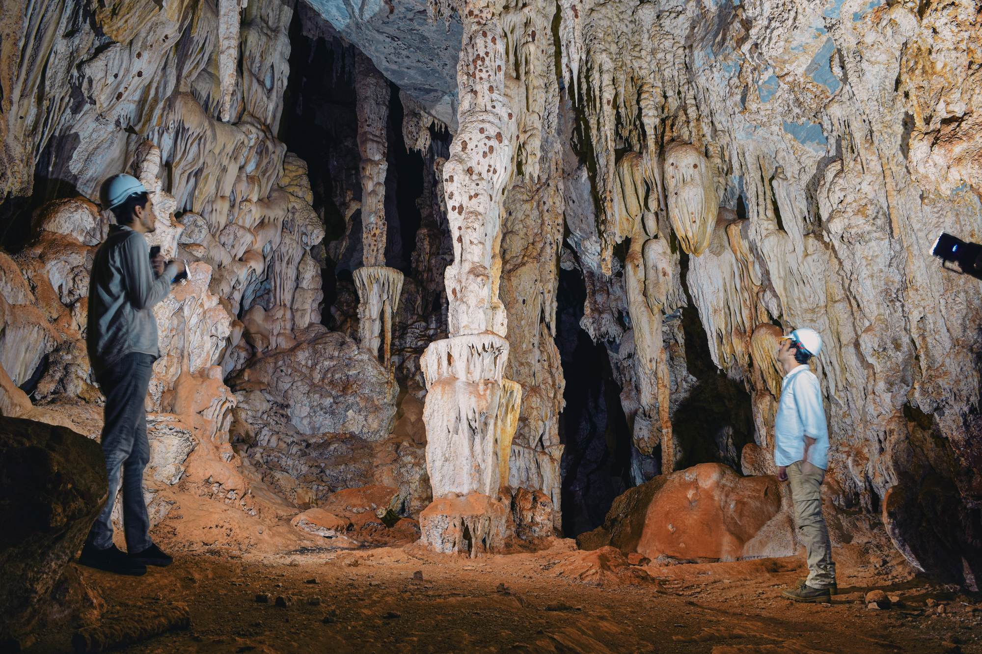The Janelão (“big window”) is the principal attraction of Peruaçu National Park. Its scale is immediately striking, expressed in a large mouth, vast dolines, immense chambers, and monumental speleothems. The cave is home to the largest stalactite ever recorded, known as “The Ballerina’s Leg”, a staggering 28 meters in length, 2 meters shorter than the famous Christ the Redeemer statue, in Rio de Janeiro. The cave itself is 8 km long and has a vertical range of 180 meters. A series of natural skylights allows sunlight to penetrate the cave, creating small interior groves. The Peruaçu River runs through the entire cave and is one of its most distinctive features.