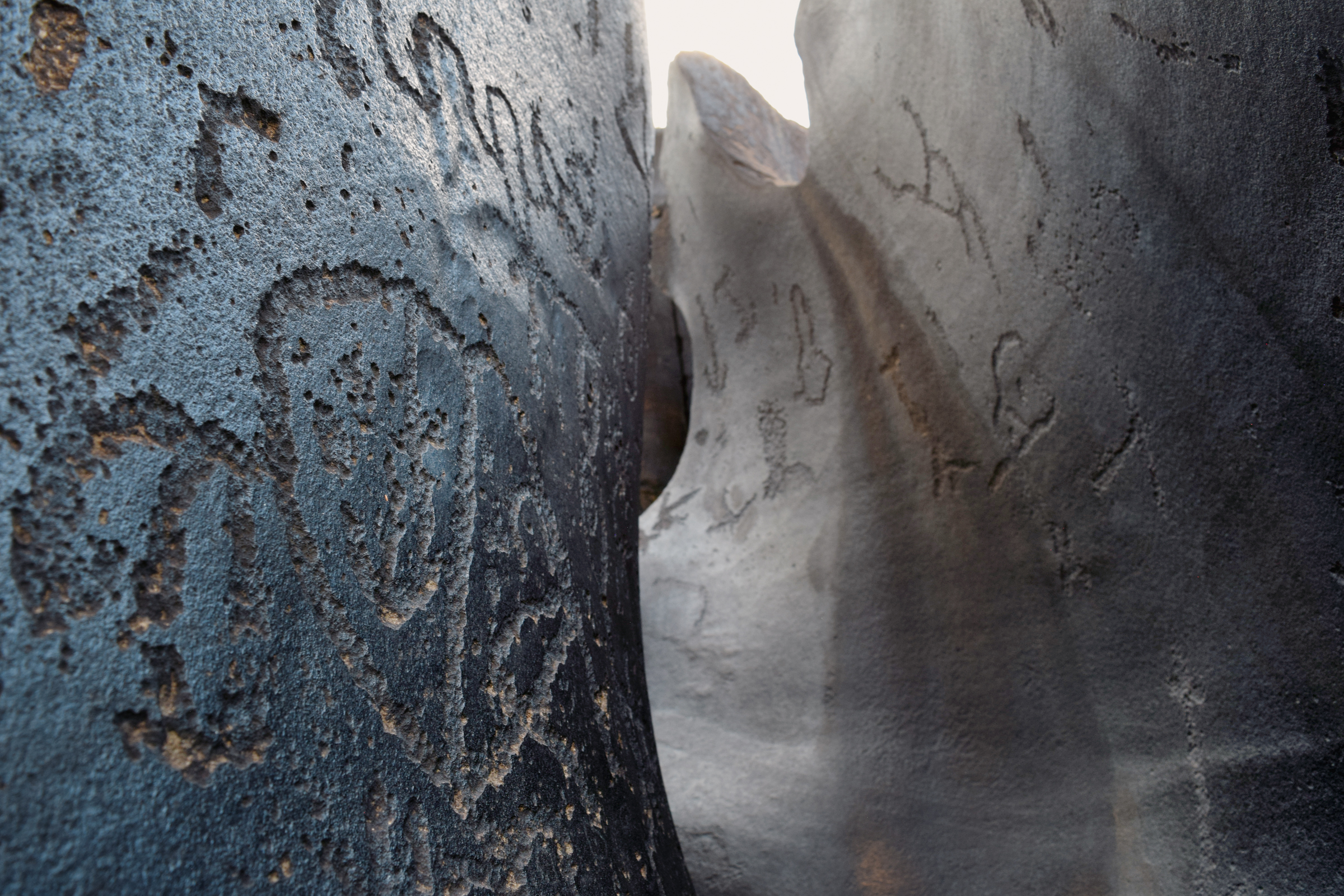 The canyon is so densely covered with motifs that it is often difficult to discern where one panel ends and another begins, each expressing the tradition’s distinct formal and symbolic character. Yet, within this vast continuum, specific groupings of motifs or distinctive rock formations stand out. Four panels, in particular, perfectly embody this site’s spirit and its conceptual sophistication: